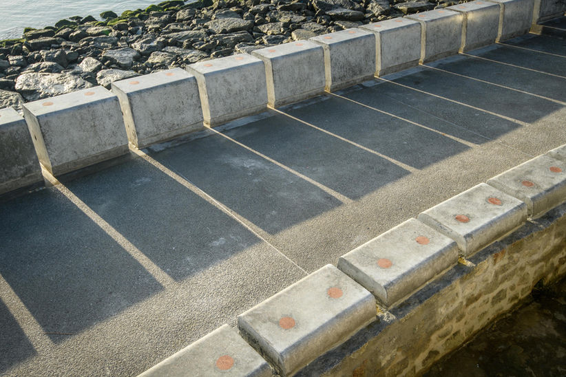 A key feature of the design is a carefully integrated sunken passageway that reveals portions of the original historic sea wall, allowing visitors to experience and appreciate this important coastal structure at close range. The promenade is framed with indigenous coastal trees and planting, creating shaded spaces that soften the urban edge while responding to the site’s climatic and environmental conditions.